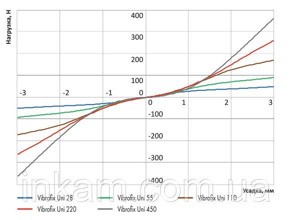 Vibrofix Uni усадка пружного елемента в залежності від навантаження на вібропідвіс: